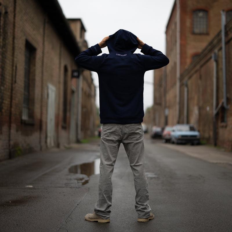Understatement - wir sehen unsere Community nicht als Litfaßsäule und platzieren unsere Brand daher unter der Kapuze und am Armbund